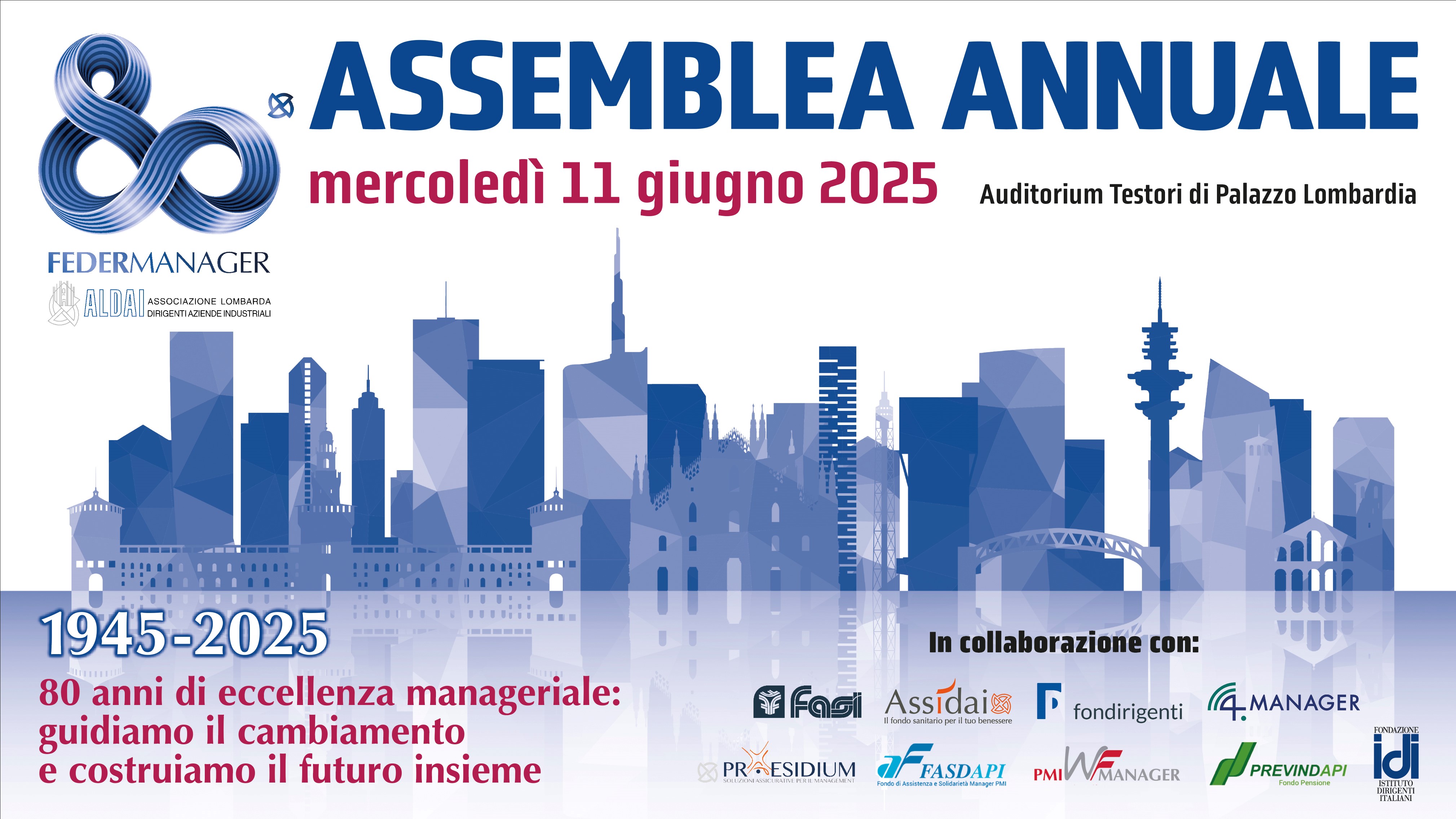 Quest’anno celebriamo un grande traguardo: l’80° anniversario di ALDAI-Federmanager, una ricorrenza importante che pone l’accento sul ruolo strategico della nostra Associazione quale punto di riferimento della realtà manageriale del territorio.