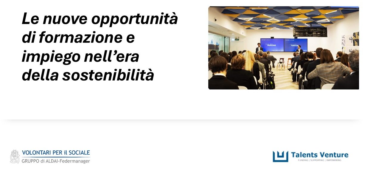 Il Gruppo Volontari per il Sociale di ALDAI-Federmanager in collaborazione con Talents Venture organizza l’evento: