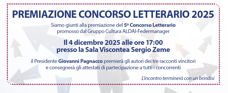 si terrà la premiazione del 5° Concorso Letterario organizzato dal Gruppo Cultura ALDAI