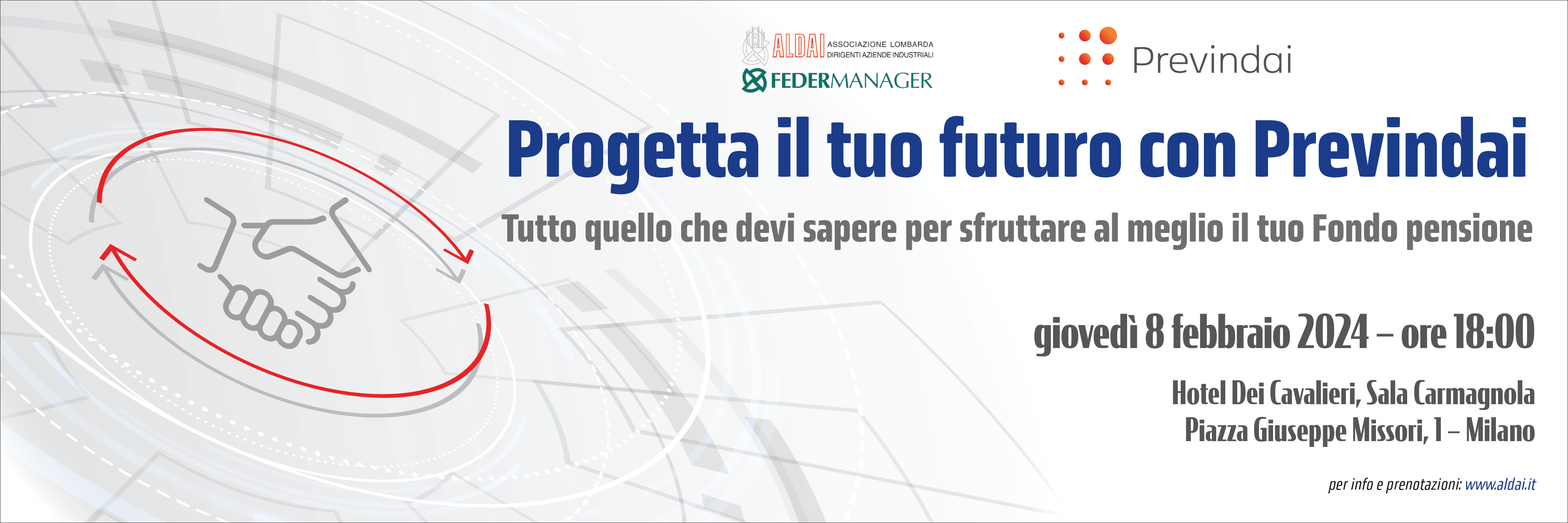 L’evento è pensato per aiutare i manager a cogliere tutte le opportunità che Previndai può offrire nel corso della carriera lavorativa e al momento del pensionamento. Un focus speciale sarà dedicato al rinnovo della convenzione assicurativa, in vigore dal 1° gennaio 2024.